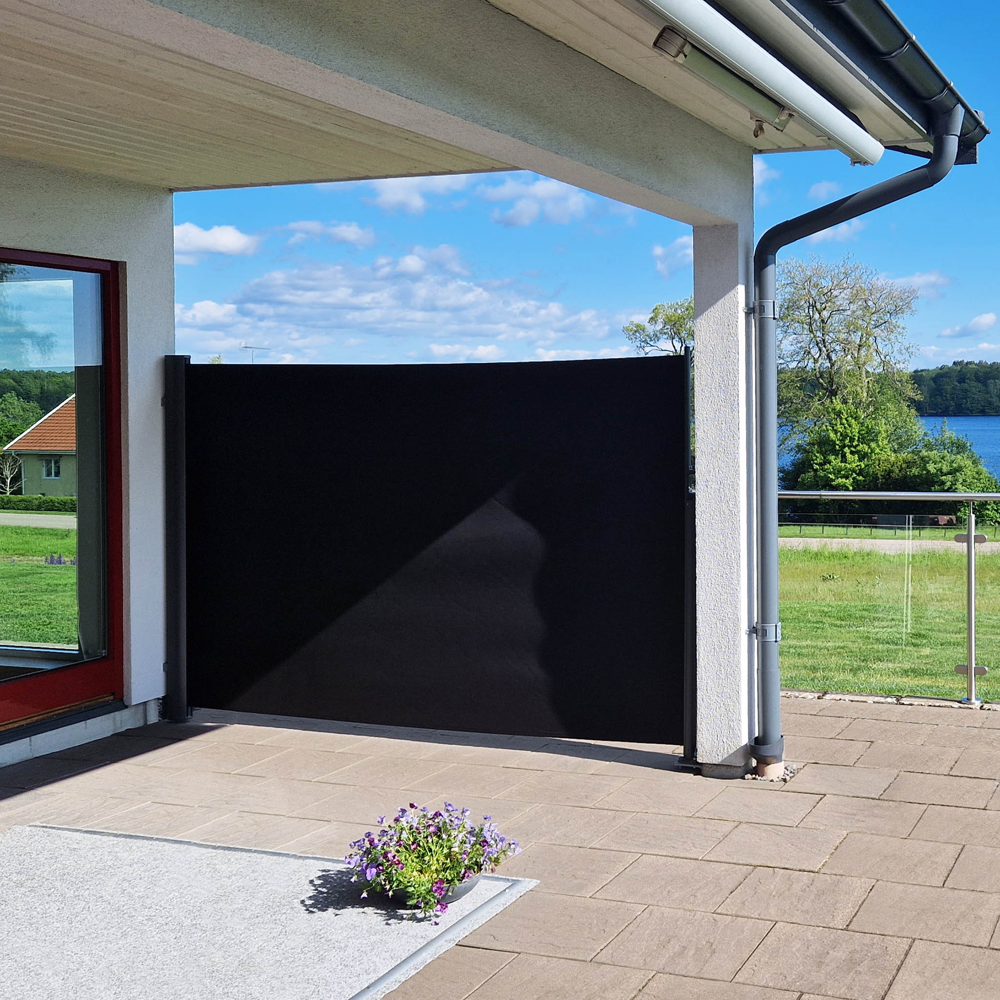 Sivumarkiisi on täydellinen ratkaisu, jos haluat suojata ulkotilasi näkymiltä tai suojautua auringolta ja tuulelta sekä luoda suojaisan alueen terassillesi tai parvekkeellesi. Sivumarkiisin kasetti kiinnitetään valitsemaasi seinään, ja markiisi vedetään sitten vaakasuunnassa haluttuun pituuteen (maksimipituus 3m). Tolppa, johon vedetty markiisi kiinnitetään, on siirrettävä ja voidaan kiinnittää ruuveilla terassilattiaan valitulle etäisyydelle enintään 3 metriin. Tämän markiisin korkeus on kokonaiset 1,8 m. Runsas korkeus tarjoaa optimaalisen suojan, jos haluat maksimoida auringonottoa ja luoda varjoa ulkotilassasi. Useimmat muut markkinoiden myymälät tarjoavat vain sivumarkiiseja, joiden korkeus on enintään 1,6 m.
