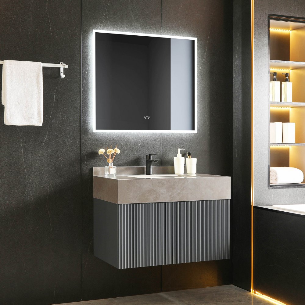 Kylpyhuonepaketti | Kestävä sintrattu kivi | LED peili | Cirrus Grey