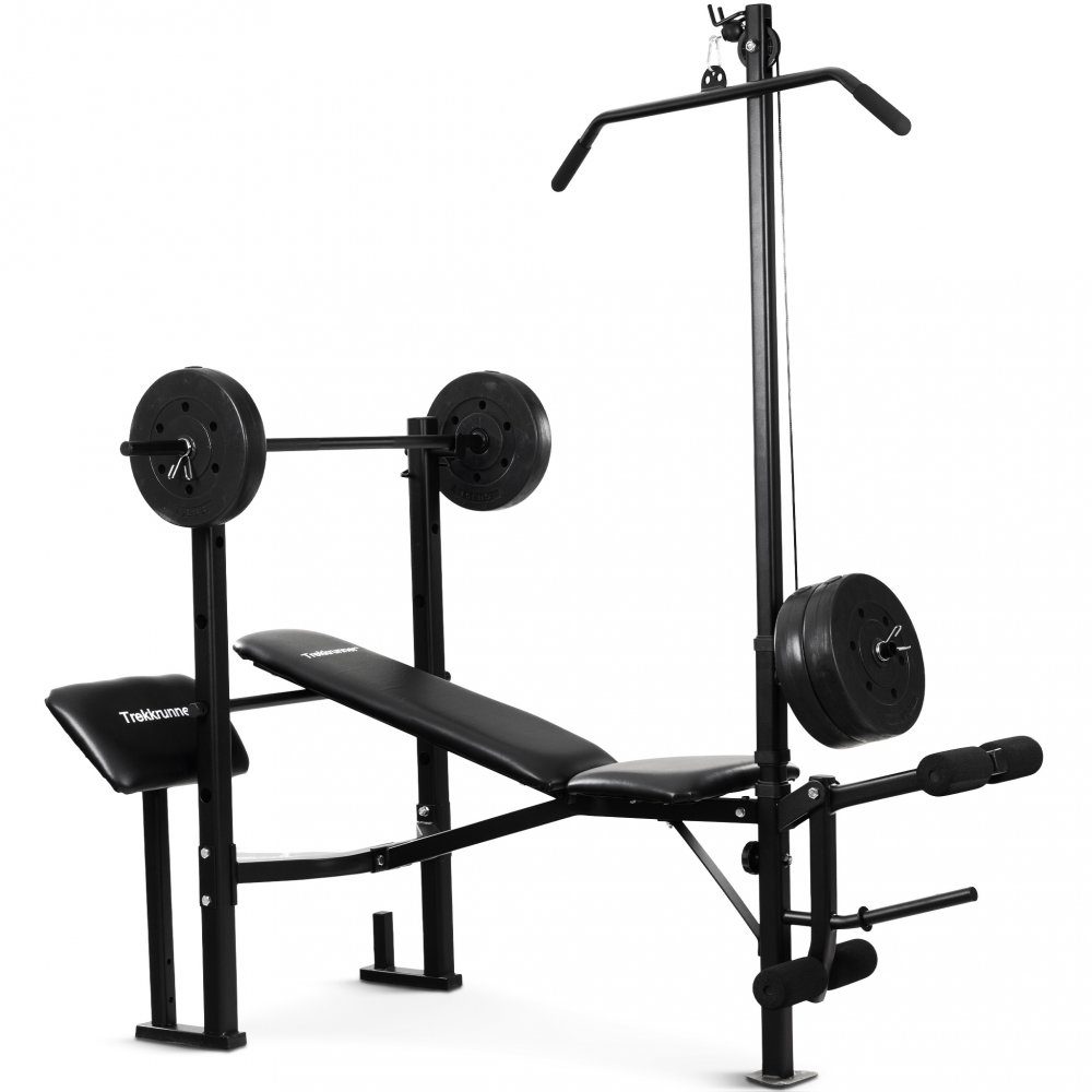 Trekkrunnerin uusi harjoituspenkki Viking on mukautettu auttamaan sinua ylläpitämään mahdollisimman monipuolista harjoitusrutiinia poistumatta kotoa. Penkkipunnerrus, latvavedot, hauiskiharat ja istuinnousut ovat vain muutamia esimerkkejä harjoituksista, joita voit tehdä tällä harjoituspenkillä. Mukana yhteensä 36 kg painoja ja tanko, joten voit aloittaa harjoittelun heti. Lisäksi sinun ei tarvitse olla riippuvainen salin aukioloajoista ja voit treenata kotona oman musiikin tahtiin. Sen mukana tulee yhteensä 6 painolevyä, 4 6,8 kg ja 2 4,5 kg.