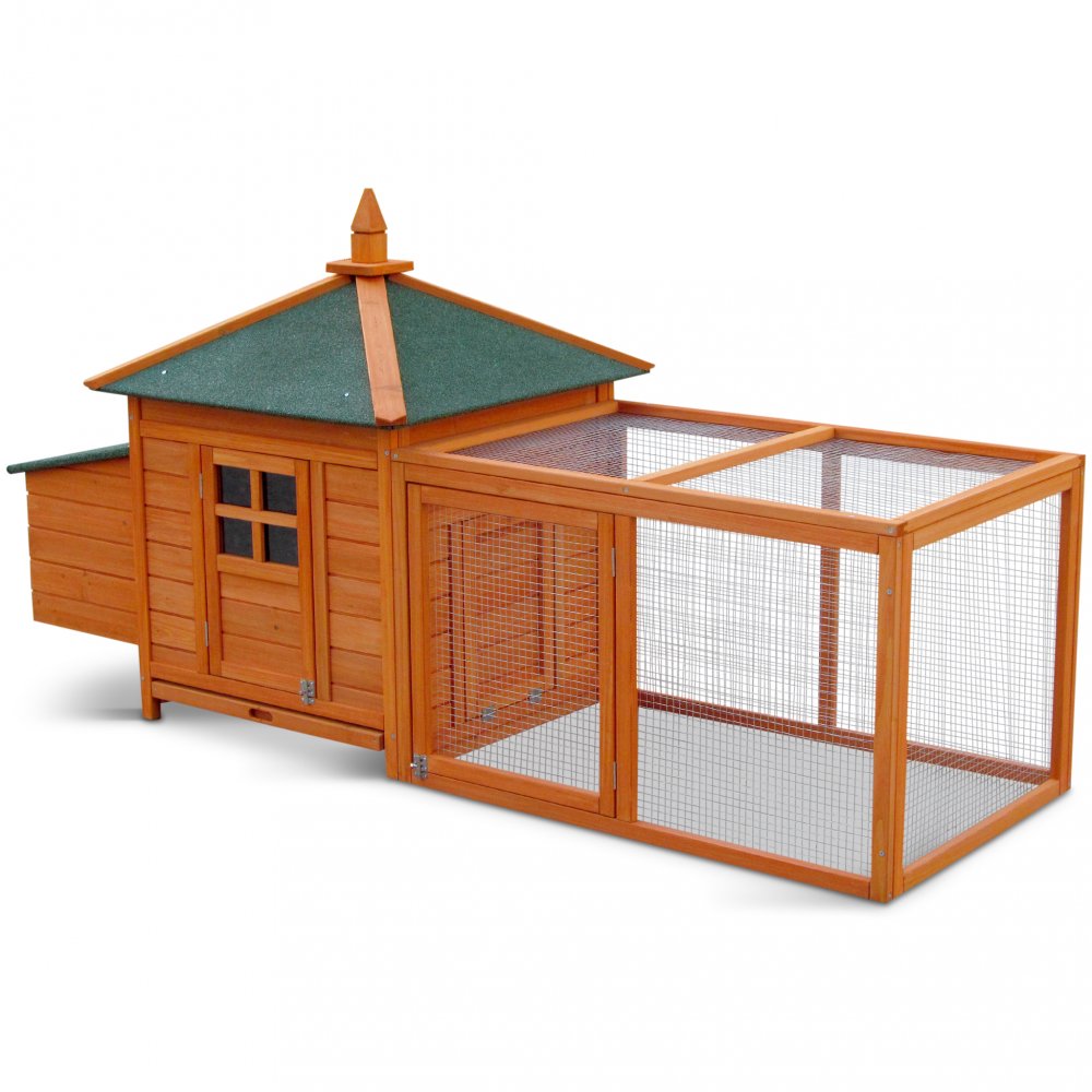 Kanakoppa on valmistettu kokonaan männystä ja katto on peitetty suojaavalla kattohuovalla. Huomioi, että ulkona suojaamaton puu tulee maalata säännöllisin väliajoin mahdollisimman pitkän käyttöiän takaamiseksi.
