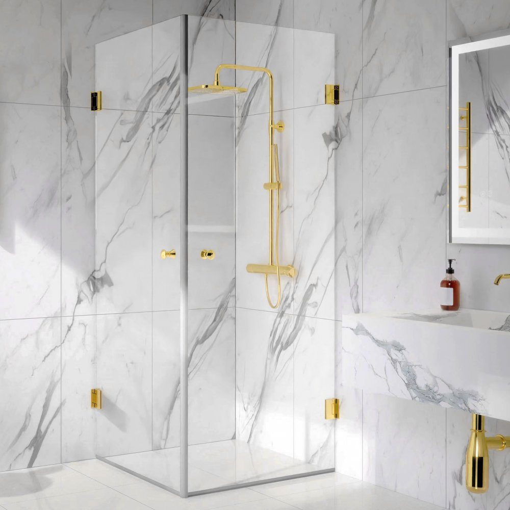 Päivitä kylpyhuoneesi tyylikkäällä lasisella suihkuseinällä! Suihkukulma Gianna tuo mukanaan jotain täysin uutta yhdistäen kirkkaan turvalasin messinkisävyisiin saranoihin ja kahvoihin. Tämä minimalistinen suihkukulma on tyylikäs lisä mihin tahansa kylpyhuoneeseen!