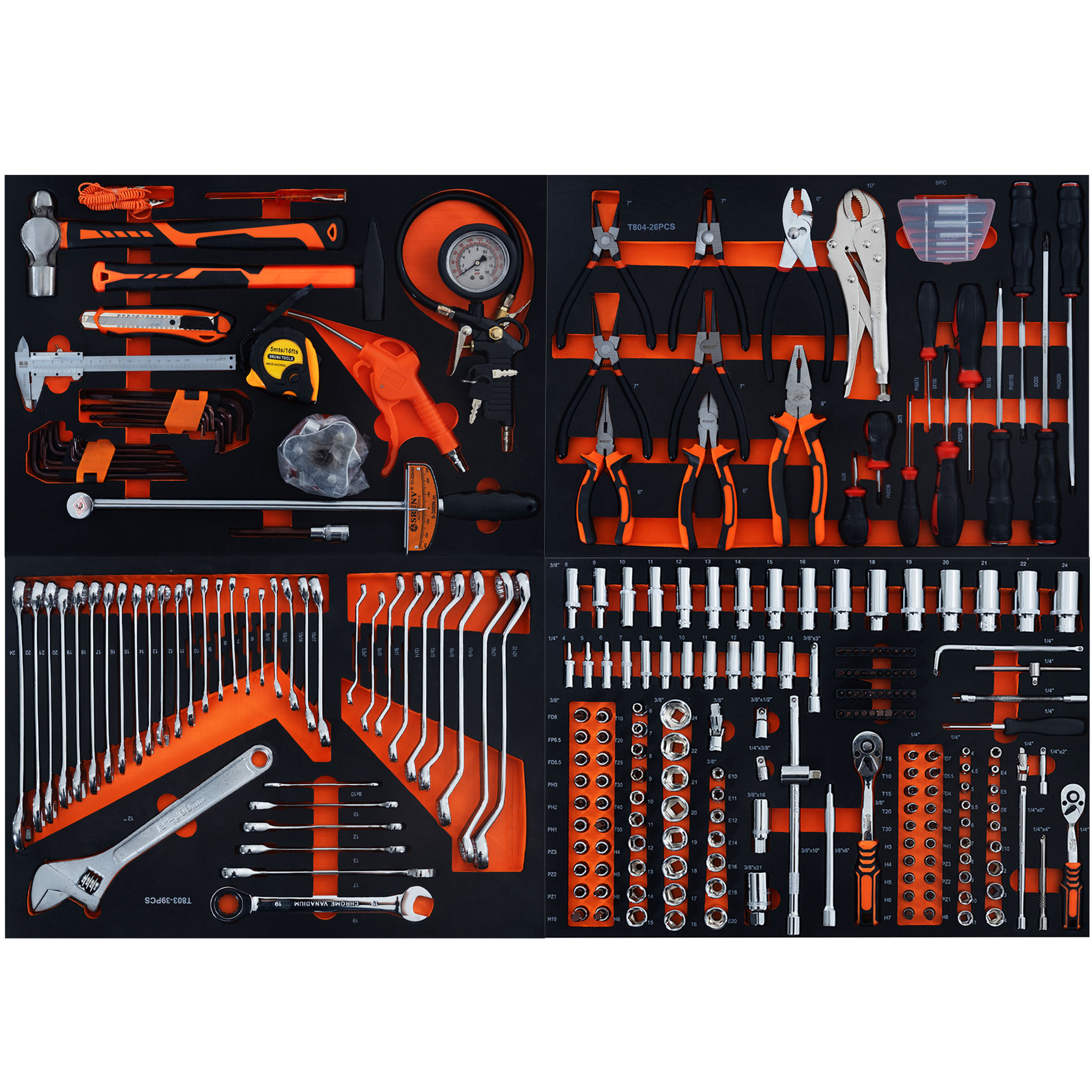 Työkalusarja, jossa 352 osaa jaettu 5 työkalualustaan. Pistorasiat, terät, avaimet, pihdit, ruuvimeisselit ja paljon muuta. Täydellinen tee-se-itse-harrastajalle. Tässä täydellisessä työkalusarjassa on kaikki mitä saatat tarvita, ja sitten muutama.
