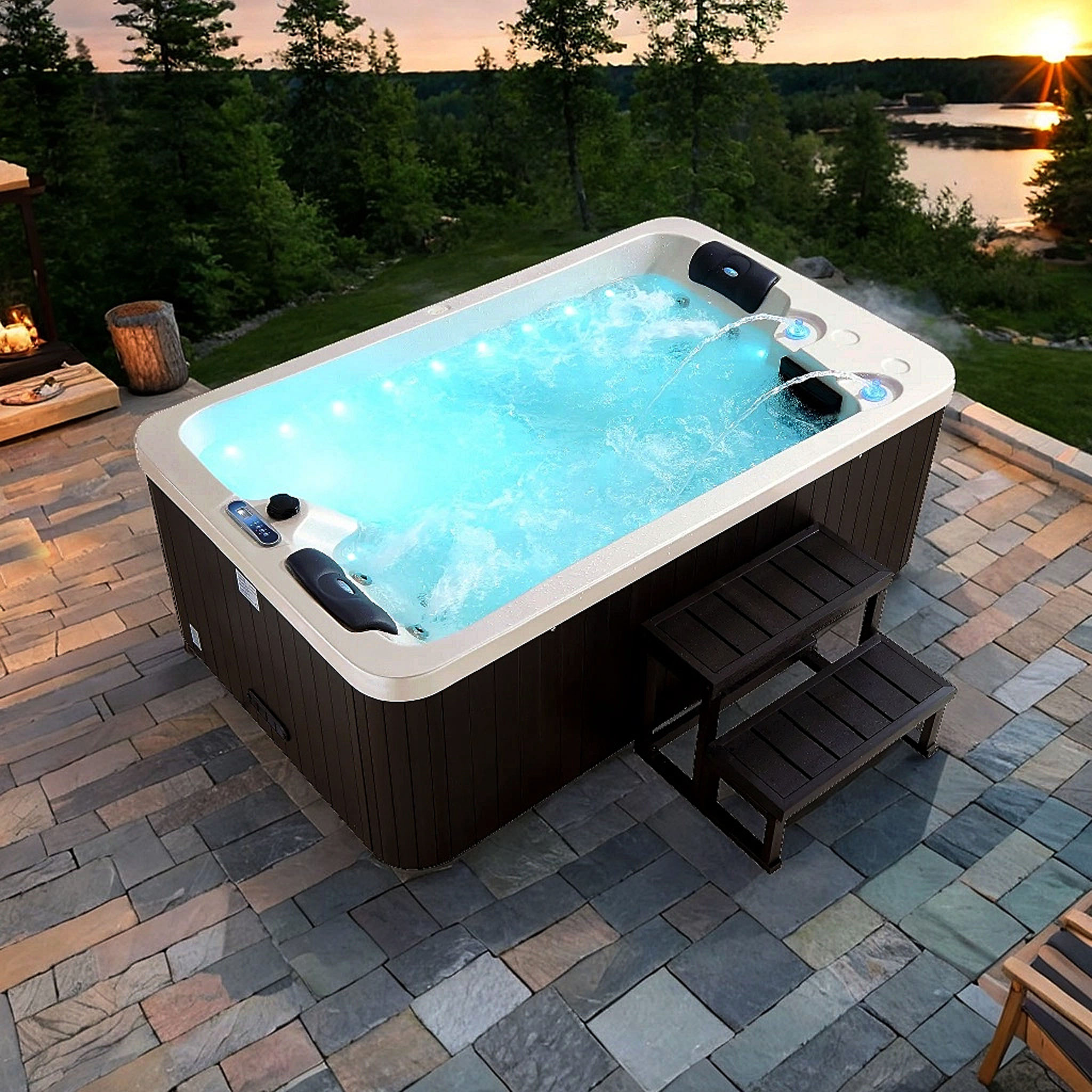 Tässä ulkokylpylässä on 37 ruostumattomasta teräksestä valmistettua suutinta. Näistä 2 on 3" vesisuuttimet, 20 Thunder-suutinta (pyörivä hierontasuihku) ja 15 suutinta kuplia varten.